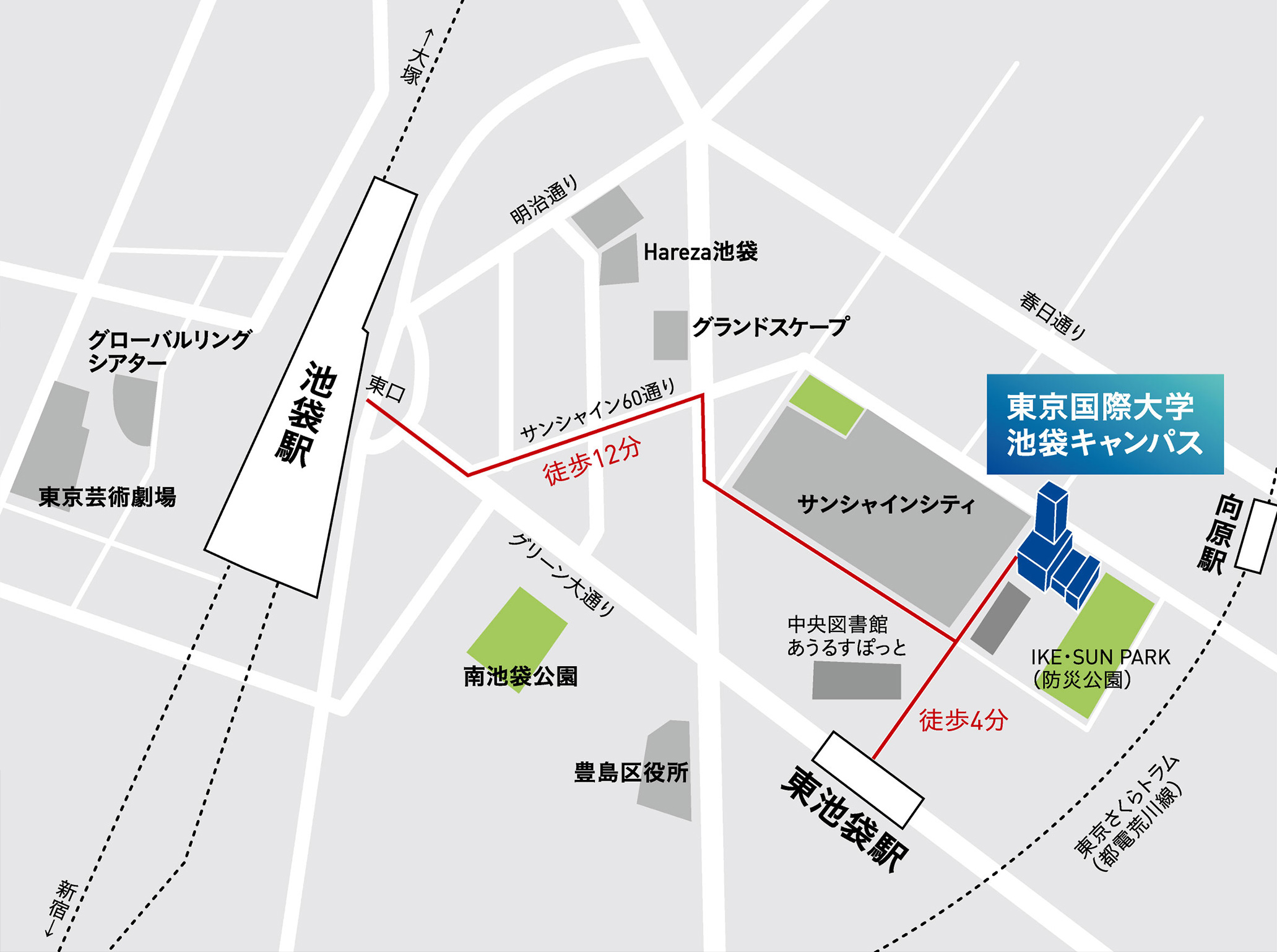 令和5年9月に、新たに「池袋キャンパス」を開設いたしました。東京国際大学では、これまでに日本人学生のみならず世界100ヵ国以上から留学生を受け入れ、名実ともに国際大学として世界の最先端の学術研究、デジタル、データサイエンス教育などを展開しています。池袋キャンパスの開設にともない、通学圏も東京、埼玉、神奈川、千葉、山梨、群馬と拡大しております。