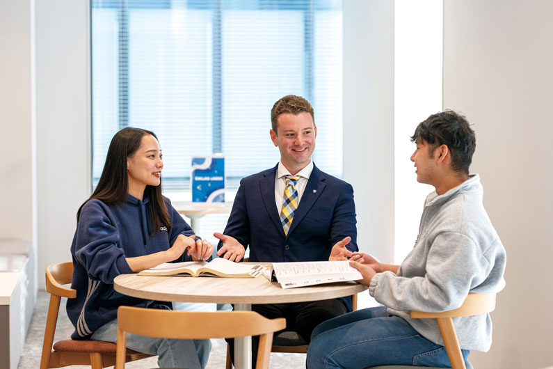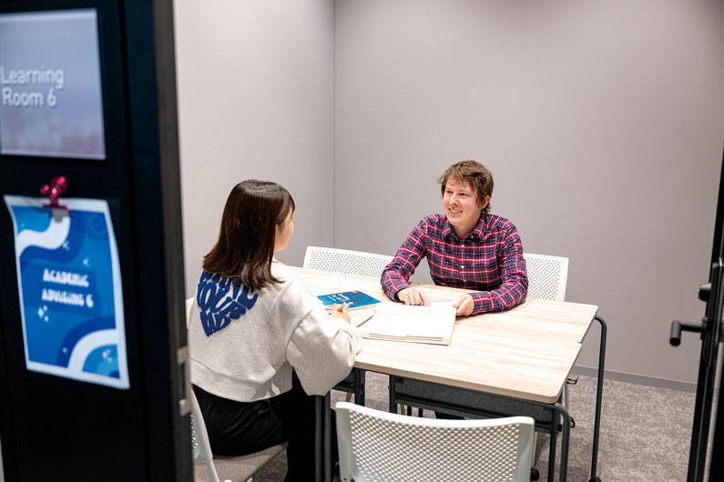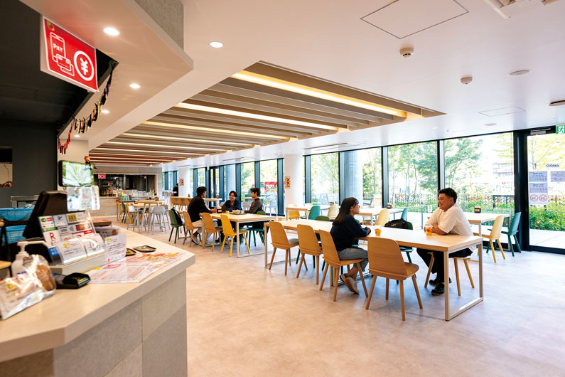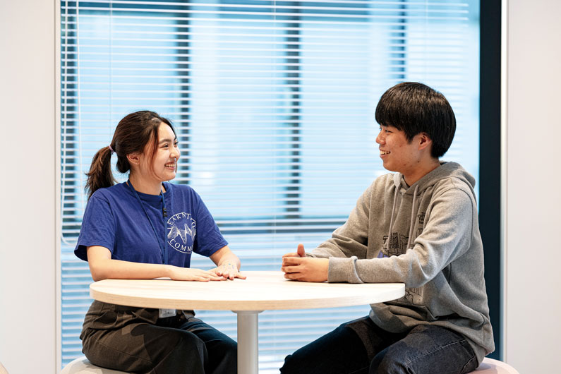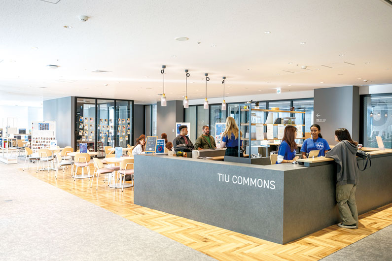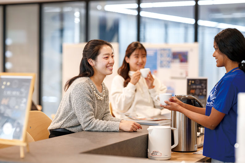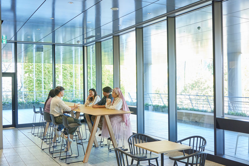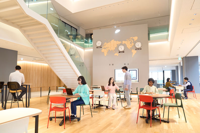 2階に設置する「Global Commons」と3階に設置する「Learning Commons」からなる学修と交流のスペース。日本人学生と留学生がともに英語、日本語、その他言語で交流を深め、日本にいながらにして留学しているようなグローバル環境に日常的に触れることができます。