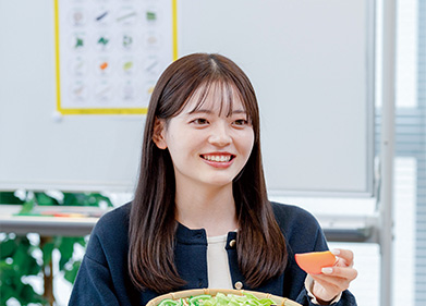 人間スポーツ学科の魅力は、人体の構造や栄養学、生理学など、幅広い側面でスポーツの専門知識を学べることです。特に先生方は元アスリートやオリンピアンの指導者として第一線での活躍を背景に持ち、教科書には載っていない知識や技術を指導してもらえました。多様な学びの中で特に私が興味を持ったのが「スポーツ栄養学」の分野です。ゼミに所属し、食事の摂り方や栄養バランスなど、総合的な知識を身につけました。また、3年次には少年野球チームへ水分補給をテーマにした講習会や発表を行い、学びをアウトプットする機会も経験。専門分野の知識を深めていく中で健康やQOL※への意識が強くなり、人々の生活を支える保険会社への就職を決めました。学科で得た健康作りにかかわる知識を活かせると確信しています。