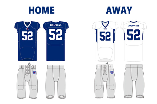2013年秋季リーグ開幕前にユニフォームを一新。チームカラーのネイビー、ホワイトを基調とするこのユニフォームで、勝利を目指す東京国際大学アメリカンフットボール部Dolphinsへの応援、よろしくお願いいたします。
